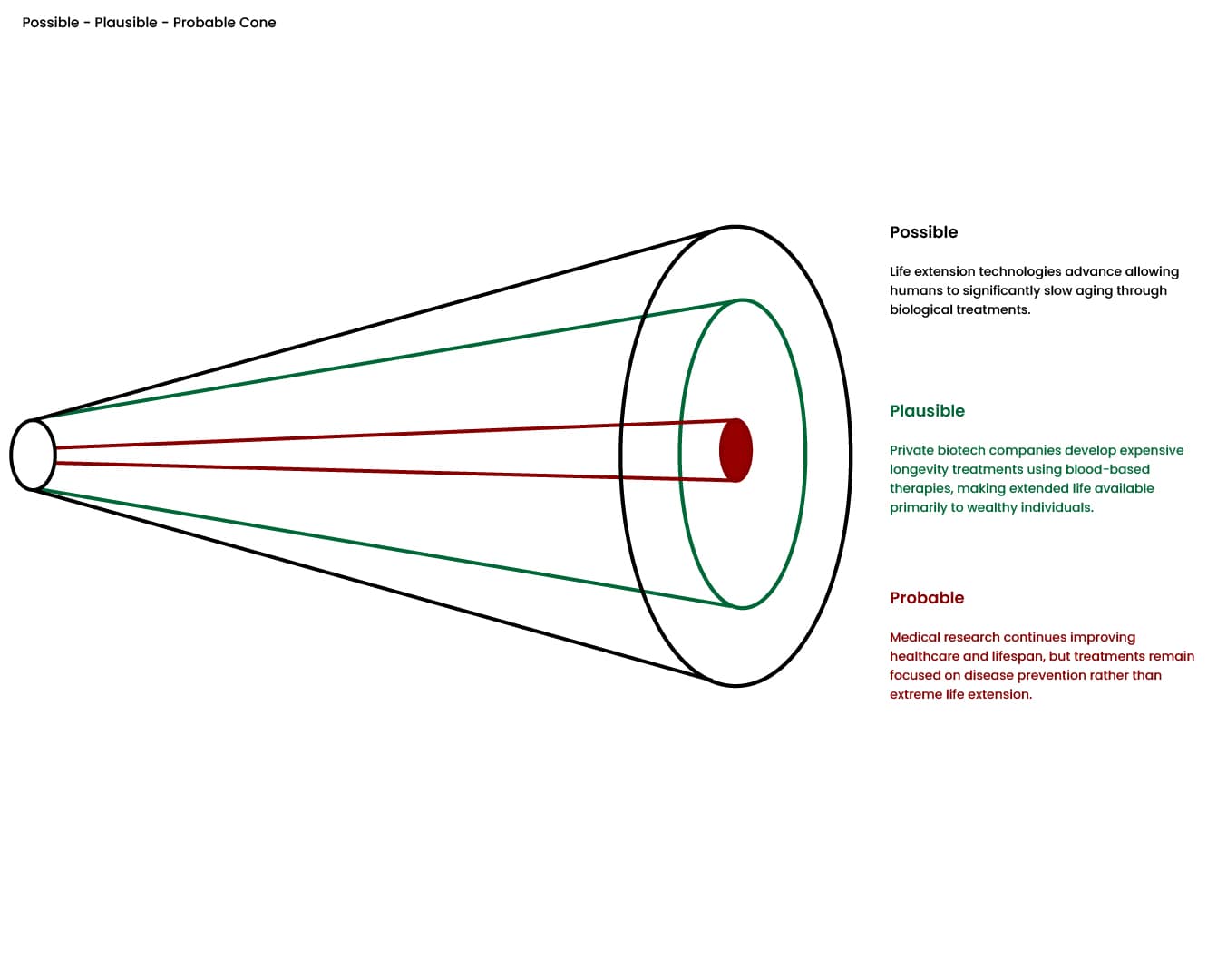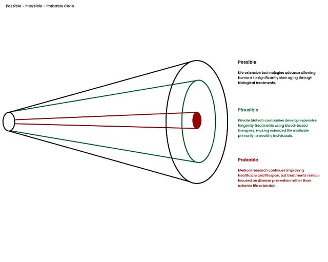 In this scenario, life extension is possible, but only if you can afford it. A biotech company called Sanguis Labs offers The VITAL Protocol, a treatment that slows aging through regular blood infusions from human donors. Inspired by real research into plasma transfusions and anti-aging medicine, this future imagines blood becoming a controlled resource and longevity becoming a luxury for the wealthy. In this future, vampires are not a myth, but a new elite class sustained by the blood of others.