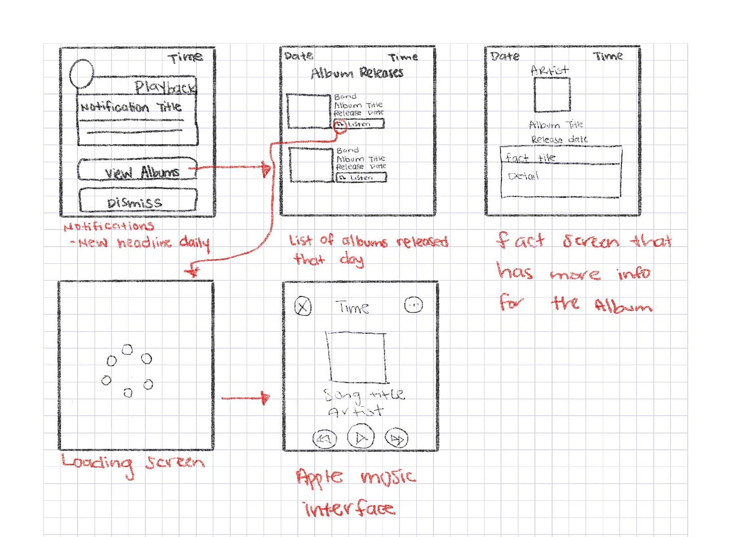 To ensure Playback followed watchOS design principles, I conducted secondary research using Apple’s watchOS guidelines to optimize readability, contrast, and tap-friendly interactions for a smartwatch. Given the smaller screen, I prioritized glanceability. For content accuracy, I researched album release dates using Loudwire to ensure the prototype displayed reliable information.